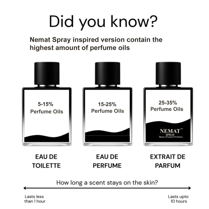 We use 25% to 30% oil concentration in all our perfumes so that you can get the best performance. Fragrance lasting almost 8 hrs to 10 hrs and 95% match with the original perfumes