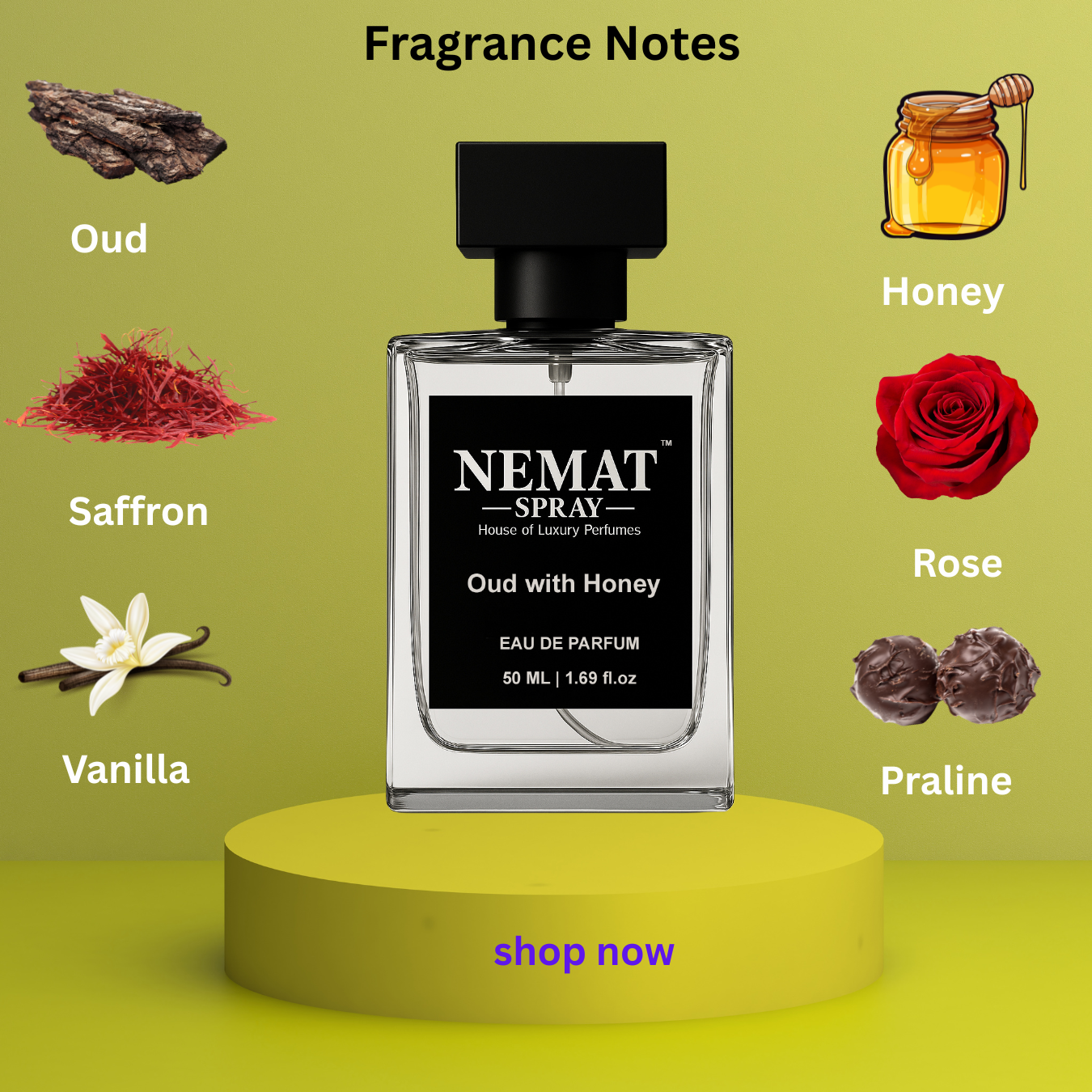 Top Notes - Oud, Saffron, Honey, Bergamot